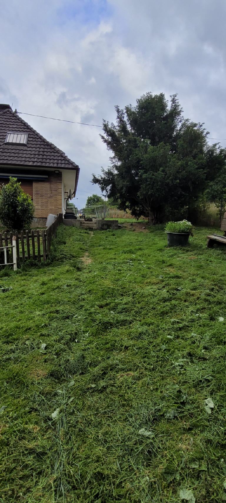 U.a. wurde dem etwas sehr hoch gewachsenen Rasen eine neue Frisur verpasst, Bäume und Büsche beschnitten, Zäune wurden repariert, neu gesetzt und ausbruchsicher gemacht, die Dachrinnen wurden gesäubert, das Pflaster von reichlich Unkraut befreit, kleinere Reparaturen erledigt und und und.